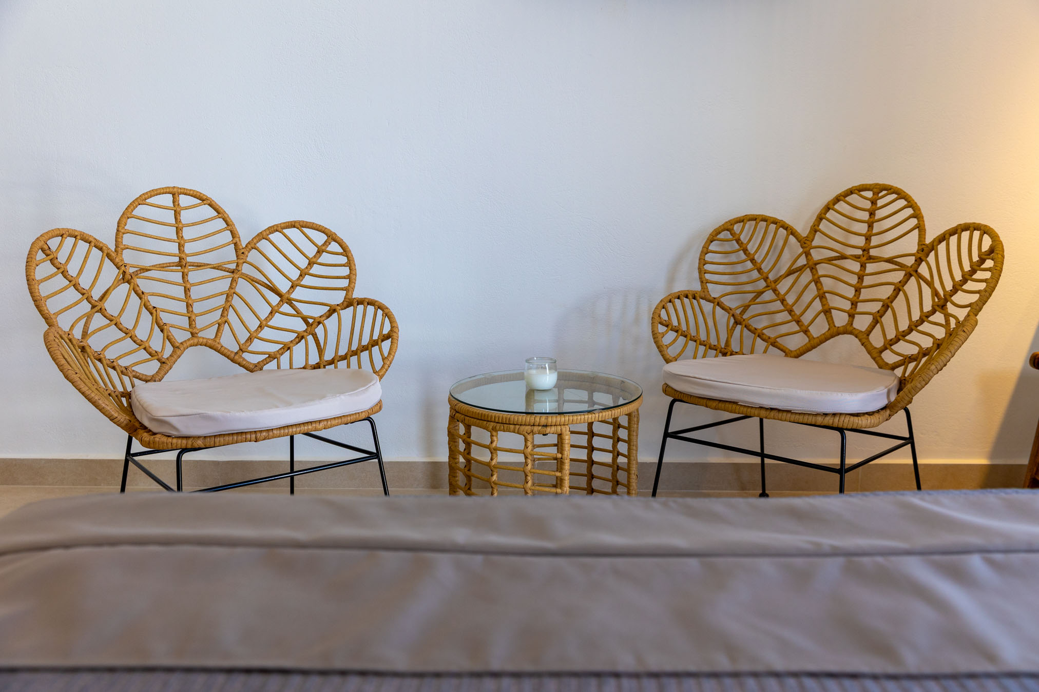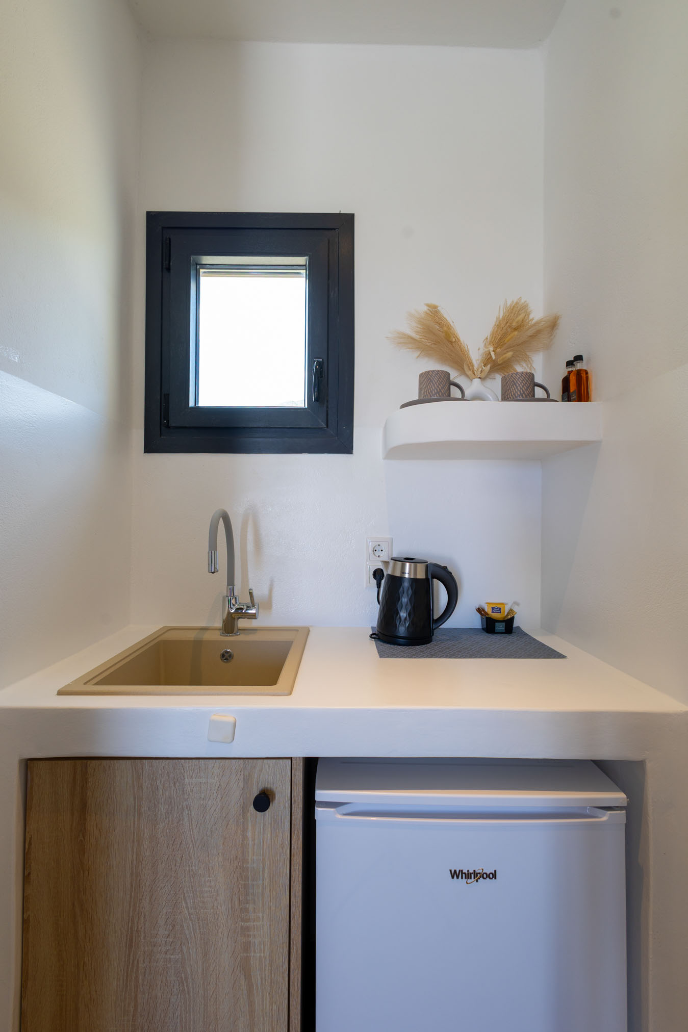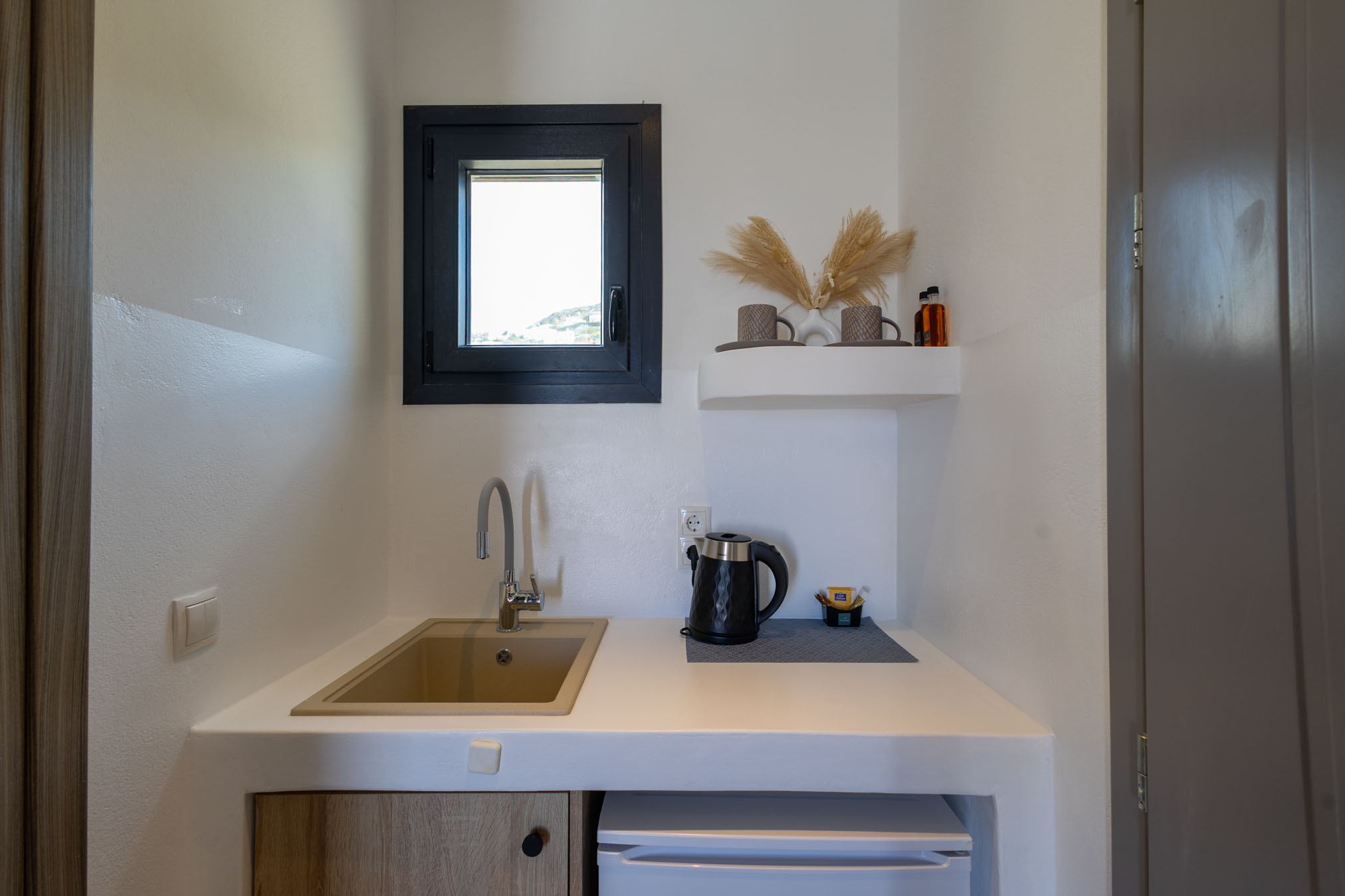 A 24 m2 retreat that blends refined simplicity with island charm. Step onto the spacious 10 m2 veranda, featuring a built-in outdoor sofa, and enjoy calming views of the Aegean. Inside, soft textures, earthy tones, and curated amenities create an atmosphere of understated luxury — perfect for a restful and romantic stay.