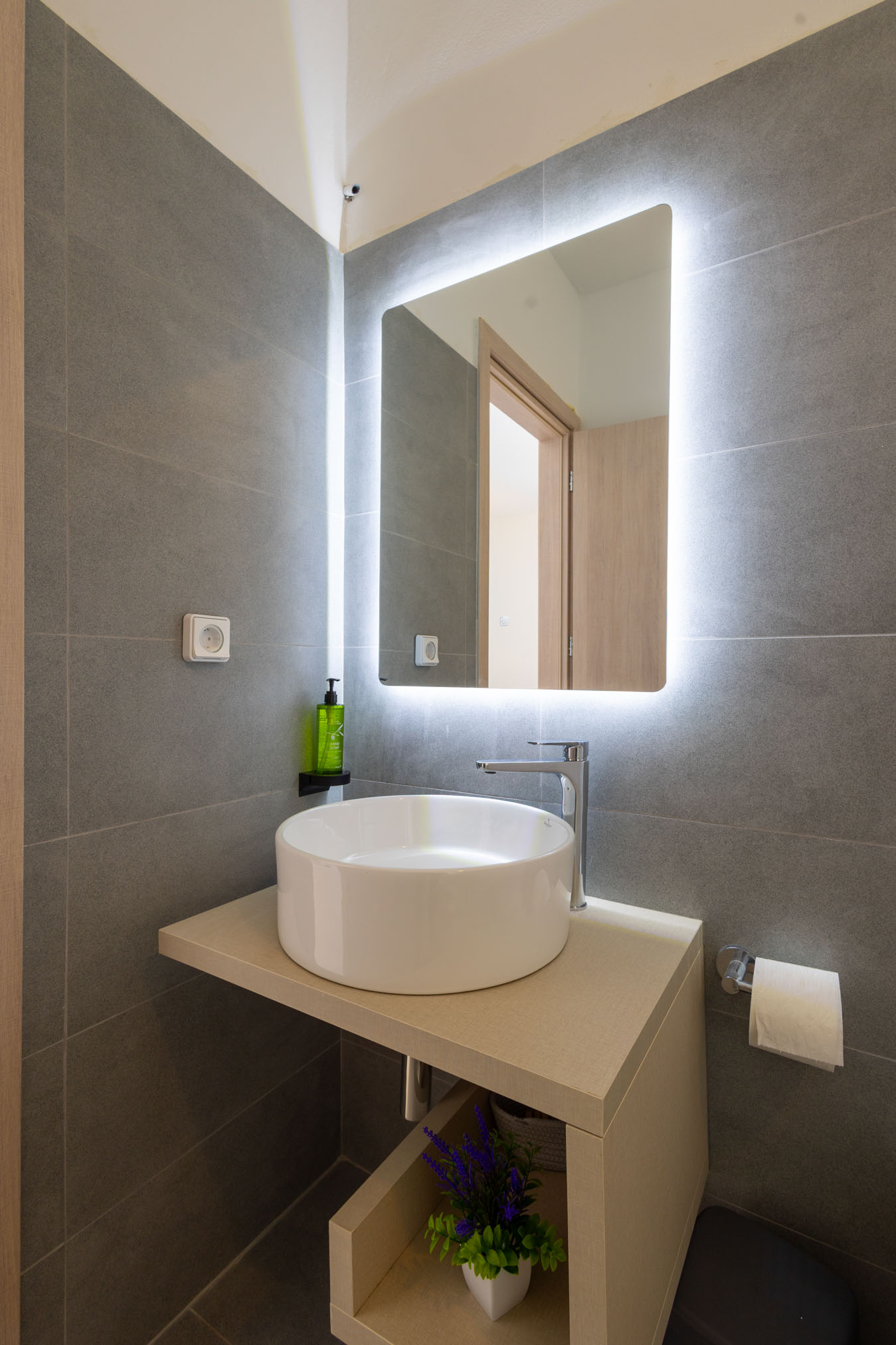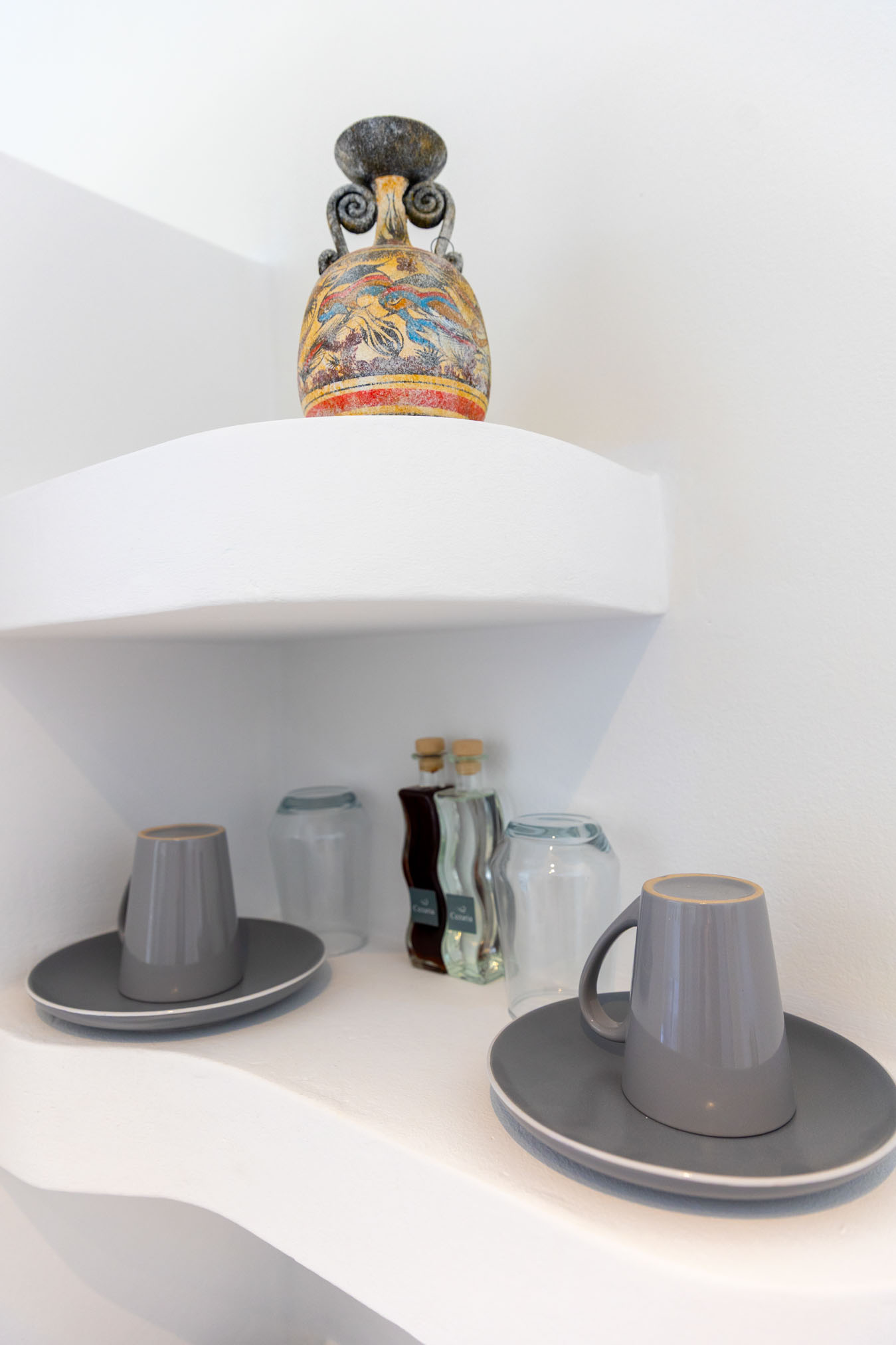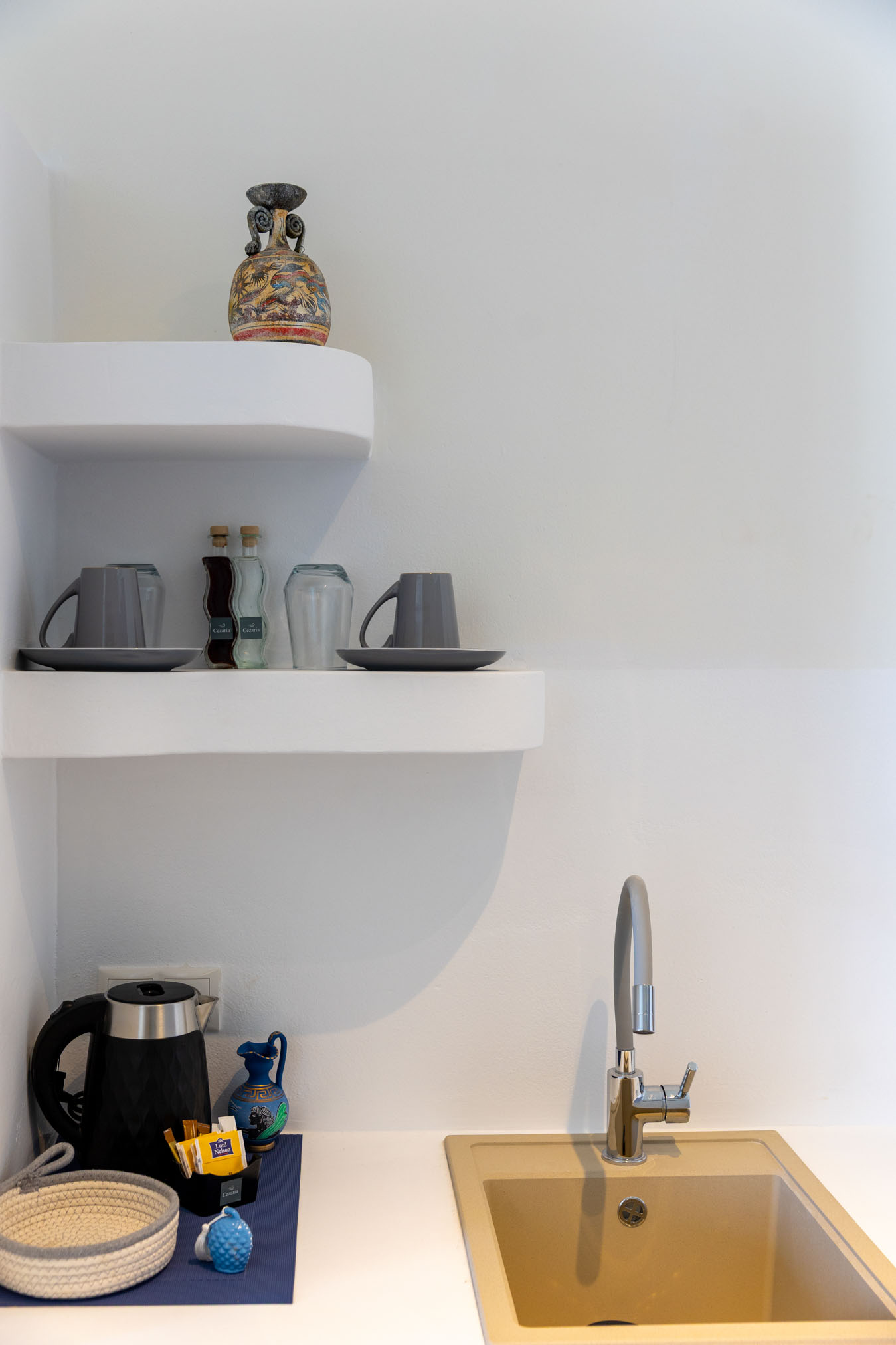 A spacious 25 m2 haven crafted for comfort and calm. Enjoy your morning coffee or evening breeze from the 2.5 m2 balcony, complete with a built-in outdoor sofa and stunning sea view. Designed with natural textures and soothing tones, this room invites you to unwind in true Cycladic elegance.